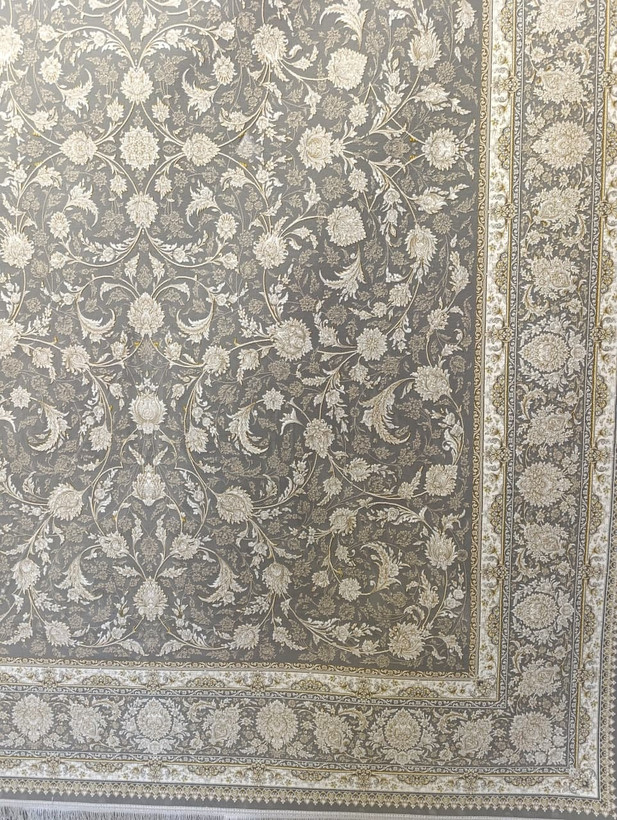 فرش 1200 شانه ؛ رنگ نقره ؛ اکریلیک ؛ طرح ساقی : فرش1200شانه هیواد از کیفیت بسیار بالایی برخوردار است و شما می توانید آن را در سایزهای مختلف با قیمت بسیار مناسب خرید کنید. فرش ماشینی هیواد کیفیت عالی دارد و با نخ اکریلیک هیچ گونه پرزدهی نخواهد داشت. دوام و استحکام فرش 1200 شانه بسیار بالا است و تا سال ها با کیفیت روز اول عمر می کند. شما می توانید این محصول را با ضمانت بازگشت 7 روزه به صورت آنلاین از گالری فرش هیواد خرید کنید.